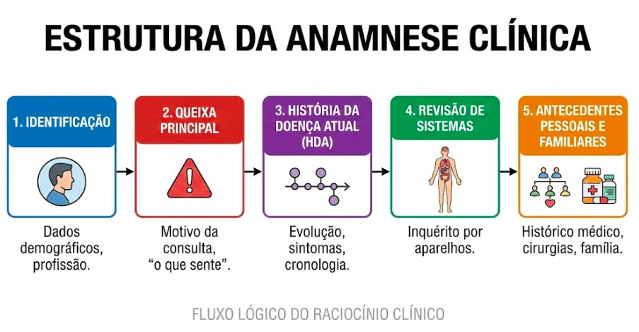 A estrutura tradicional que aprendemos nos livros: Queixa Principal, História da Doença Atual (HDA), Revisão de Sistemas, Antecedentes Familiares, é fundamental. Contudo, o verdadeiro diferencial não está na ordem das perguntas, mas na profundidade da escuta.