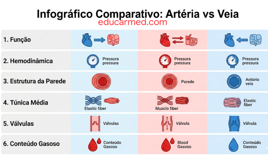 Tabela comparativa exclusiva (Artéria vs Veia)