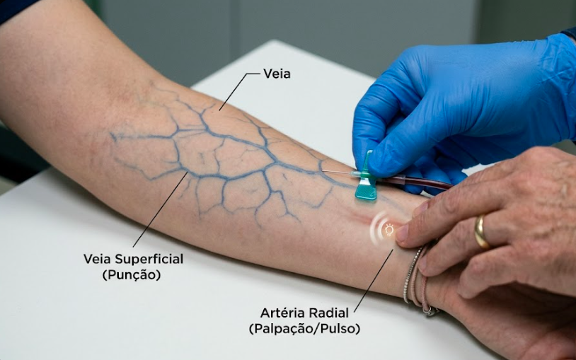 É aqui que o conhecimento se transforma em conduta. As diferenças entre artéria e veia impactam diretamente o exame físico e os procedimentos invasivos:
